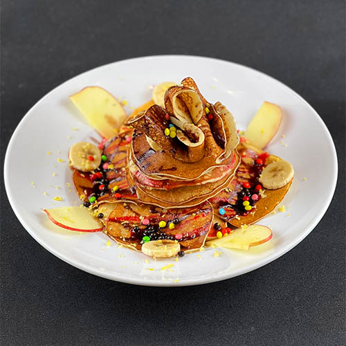 پنکیک - میوه فصل - سس شکلات