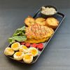 تخم مرغ پخته - ذرت - گوجه چری - شنیسل - نخود فرنگی - سس مخصوص